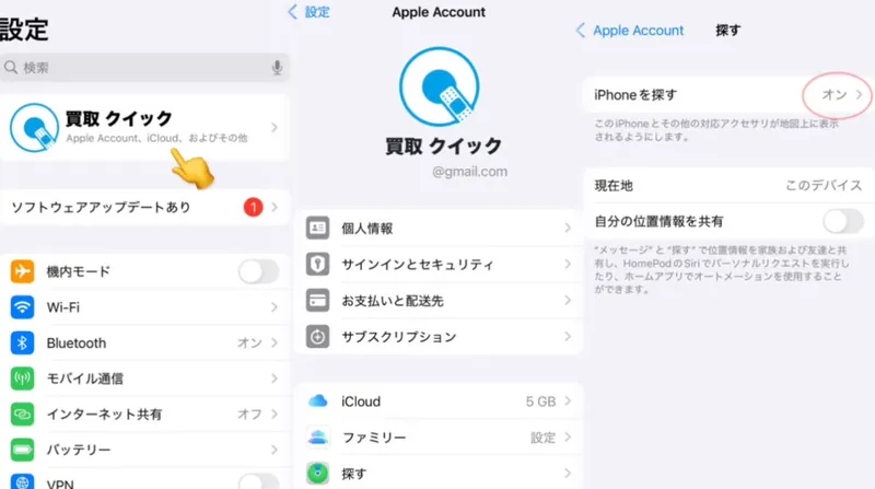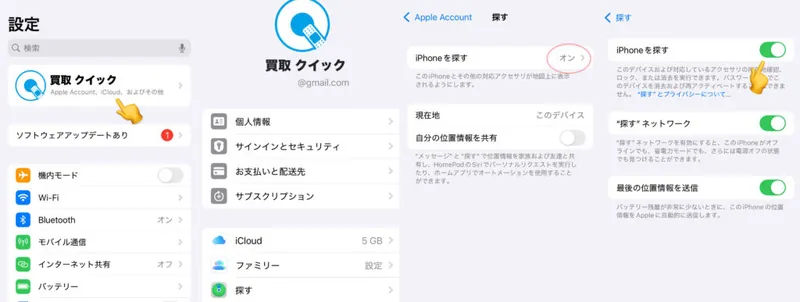 ・iPhoneの設定→最上部の自分の名前(AppleID)→探す→iPhoneを探す