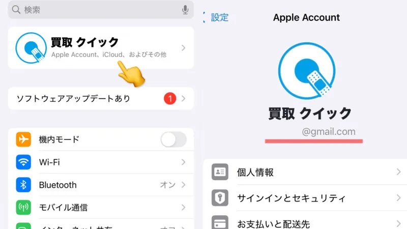 設定の自分の名前をタップし表示されているアドレスがAppleIDです。