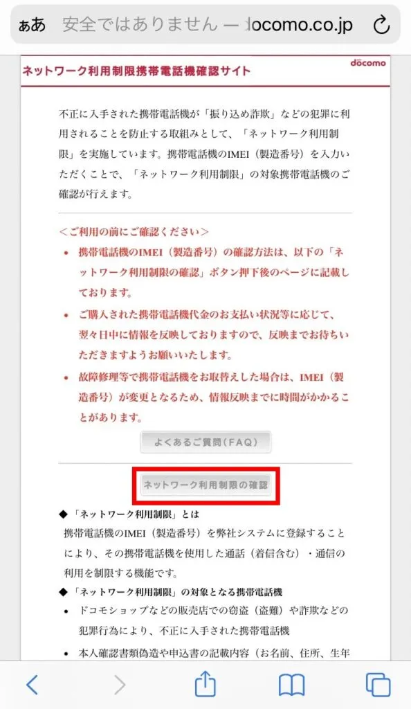 ネットワーク利用制限とは、不正に入手された携帯が犯罪に利用されることを防止するためにキャリアが設けているシステムです。