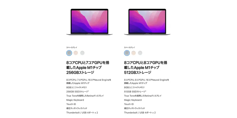 M1チップ搭載のMacBook Airは現状1機種のみ