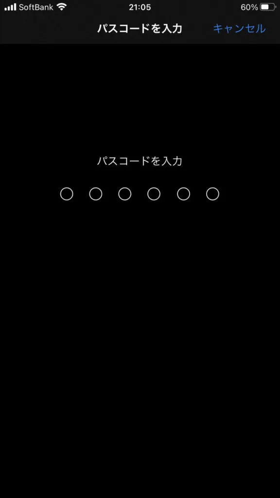 - パスコード入力画面が表示されるので6桁の数字を入力。