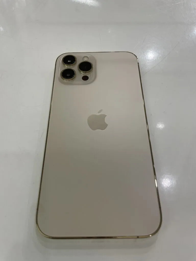 お買取した端末は『iPhone12ProMax 128GB ゴールド AppleSIMフリー 中古品 本体、箱、付属品あり 』でございます。