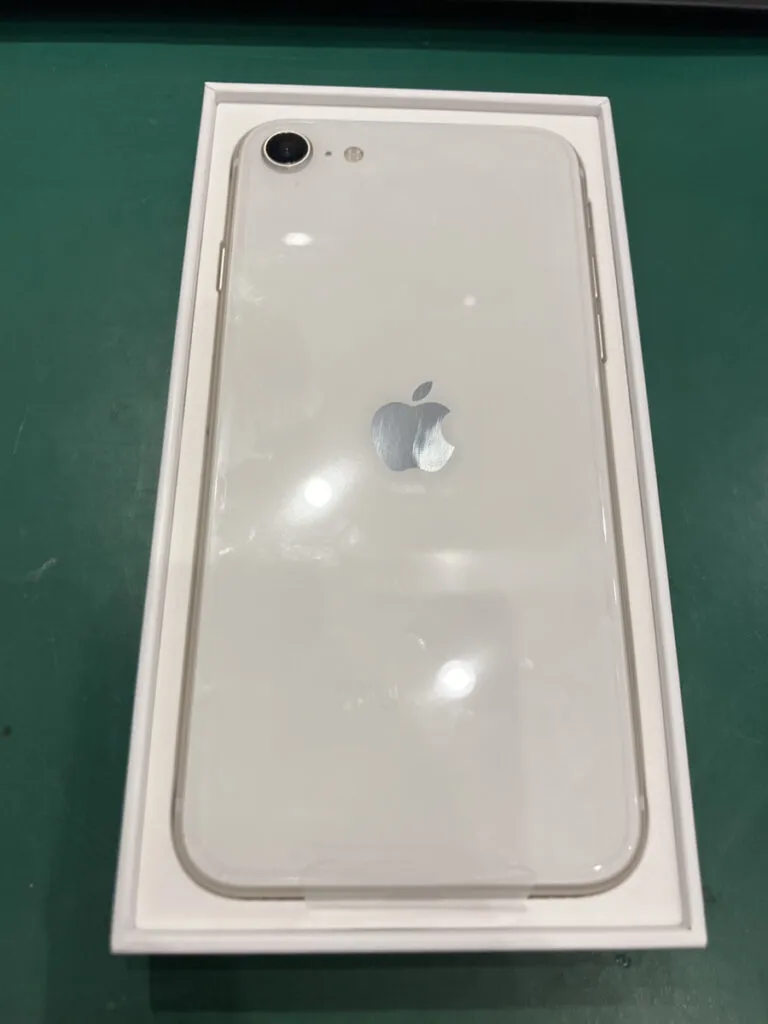 お買取した端末は『iPhoneSE3 64GB ホワイト ドコモ〇 新品未使用品』でございます。
