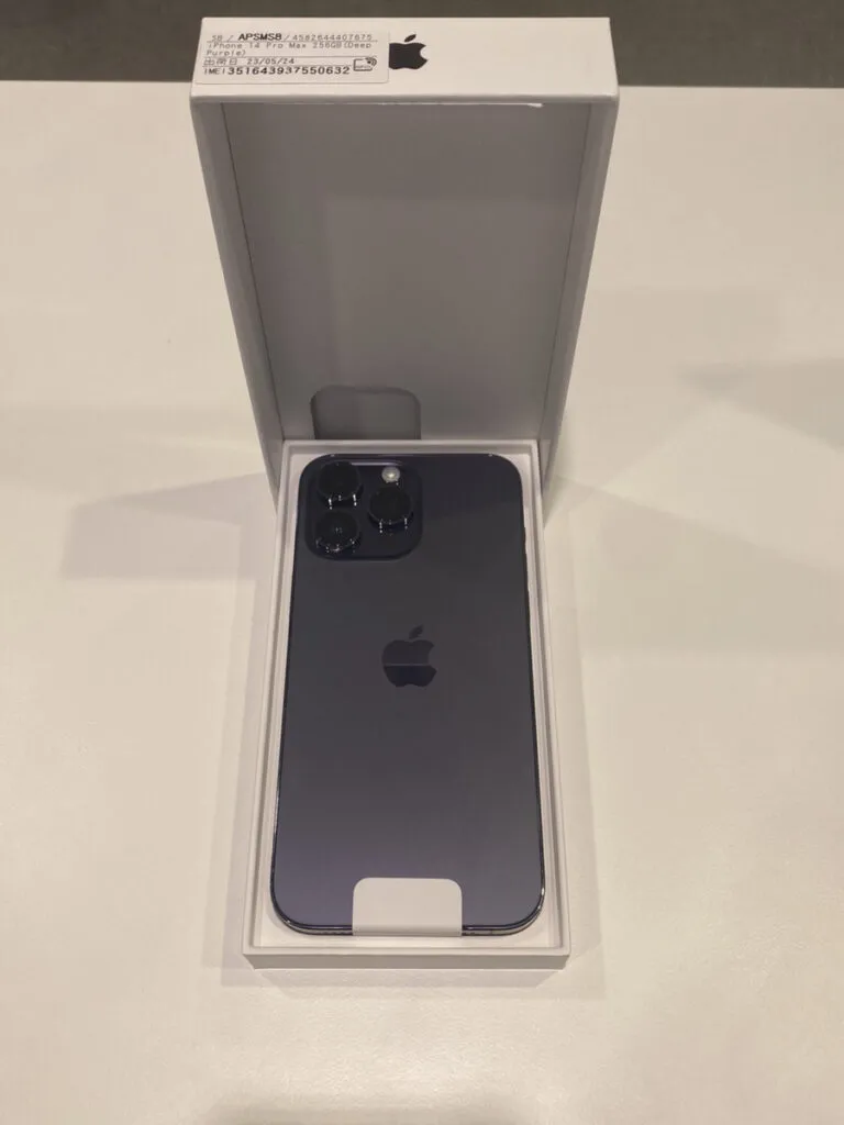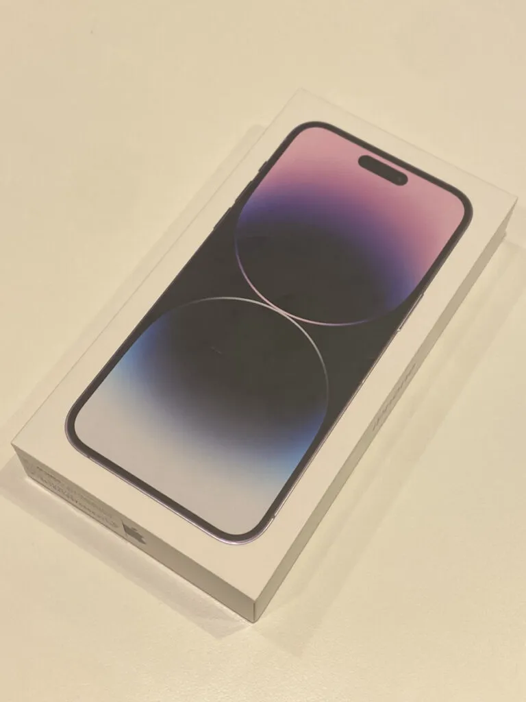 お買取した端末は『IPhone14ProMax 256GB パープル 開封済み新品未使用品 』でございます。