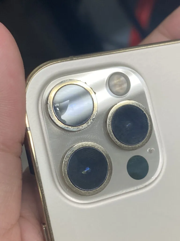 こちらのiPhone12Proは背面のカメラレンズが一つかけている