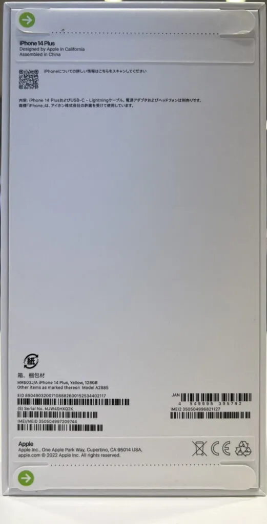 お買取した端末は『iPhone14Plus 128GB 新品未開封品』でございます。