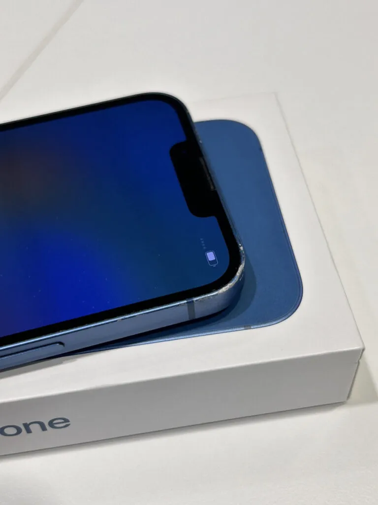 iPhone13は画面の上部にかすり傷、フレームに陥没傷や塗装剥げが目立ちました。