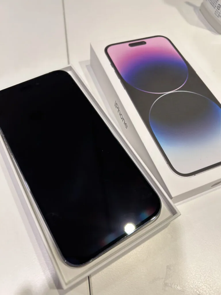 お買取した端末は『iPhone14ProMax 128GB 中古 本体 箱 SoftBank○』でございます。