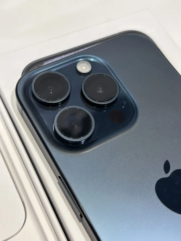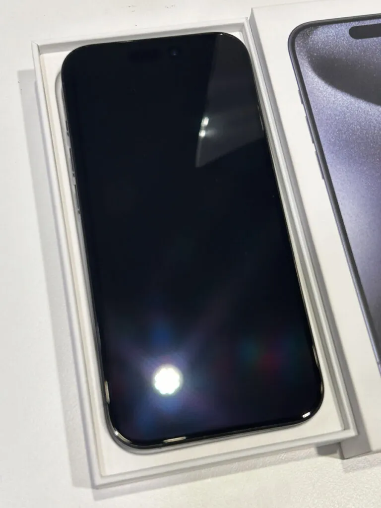 お買取した端末は『iPhone15Pro 256GB 中古 本体 箱 付属品 AppleSIMフリー』でございます。