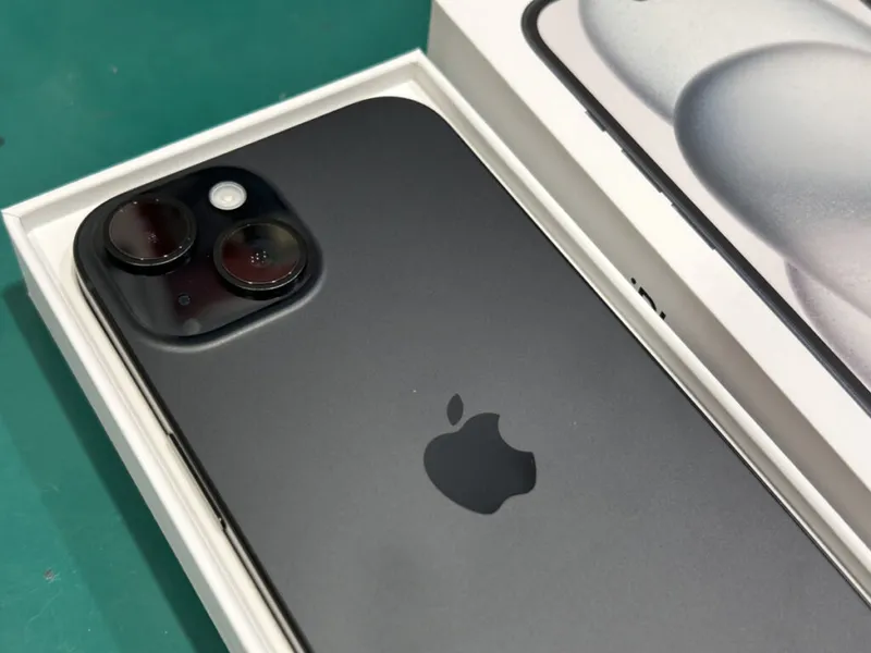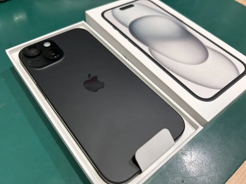 お買取した端末は『iPhone15 128GB 新品開封品 本体 箱 新品付属品 docomo○』でございます。