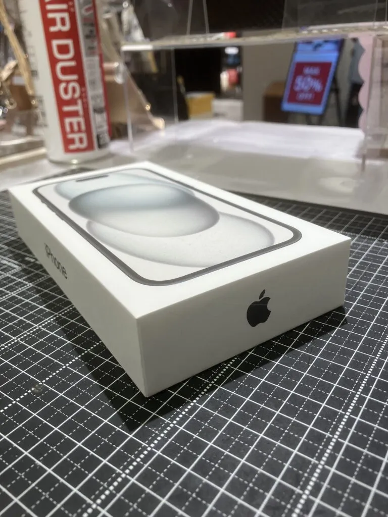 Phone15は新品未開封のため箱の傷や汚れなどが減額対象になりますが、