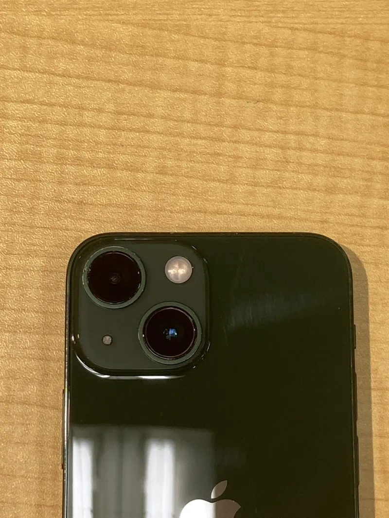 iPhone13miniは、画面と背面に細かい傷が数箇所と、カメラ周りにも塗装が剥がれているありました。