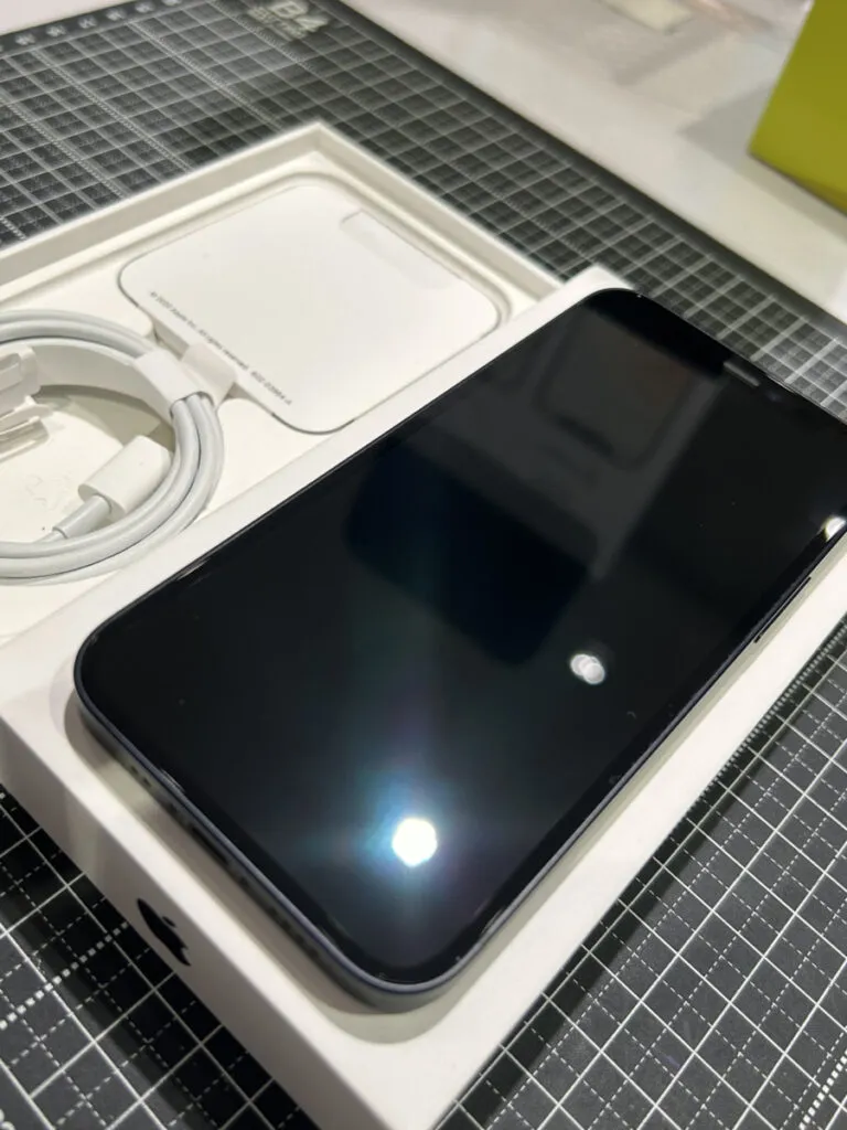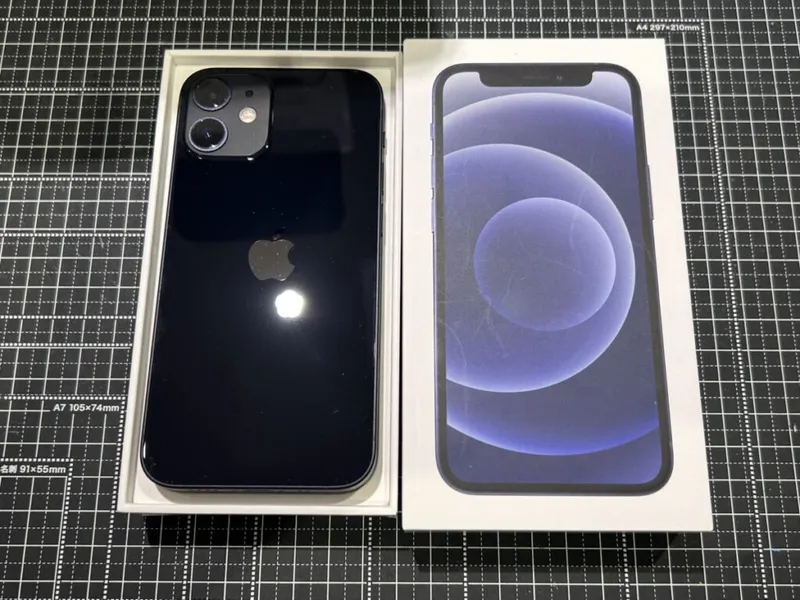 お買取した端末は『iPhone12mini 64GB 中古 本体 箱 新品付属品 au○』でございます。