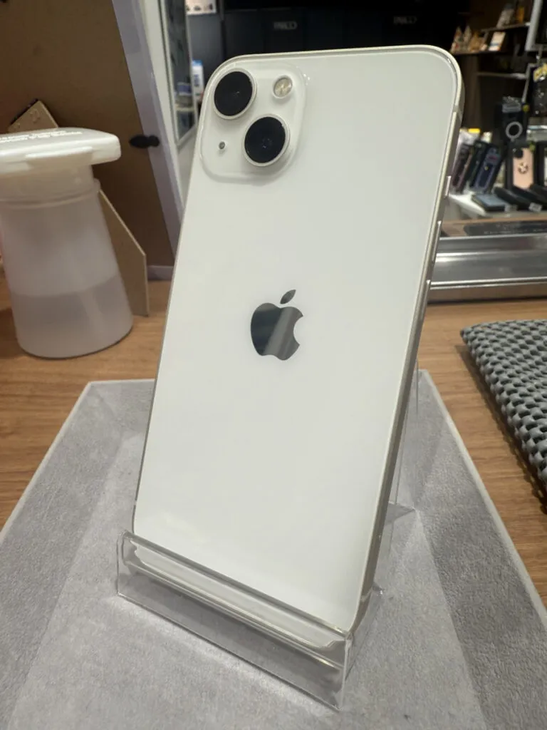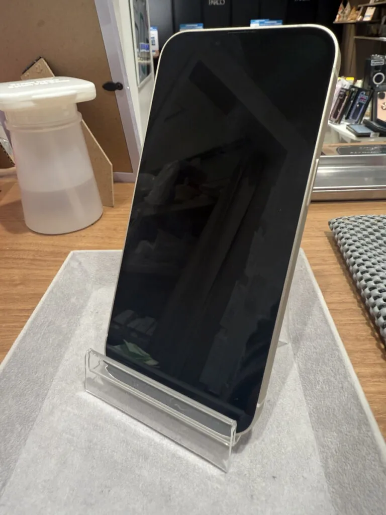 お買取した端末は『iPhone13 128GB ホワイト SIMロックなし 楽天モバイル〇 中古本体のみ 目立つ傷なし』でございます。