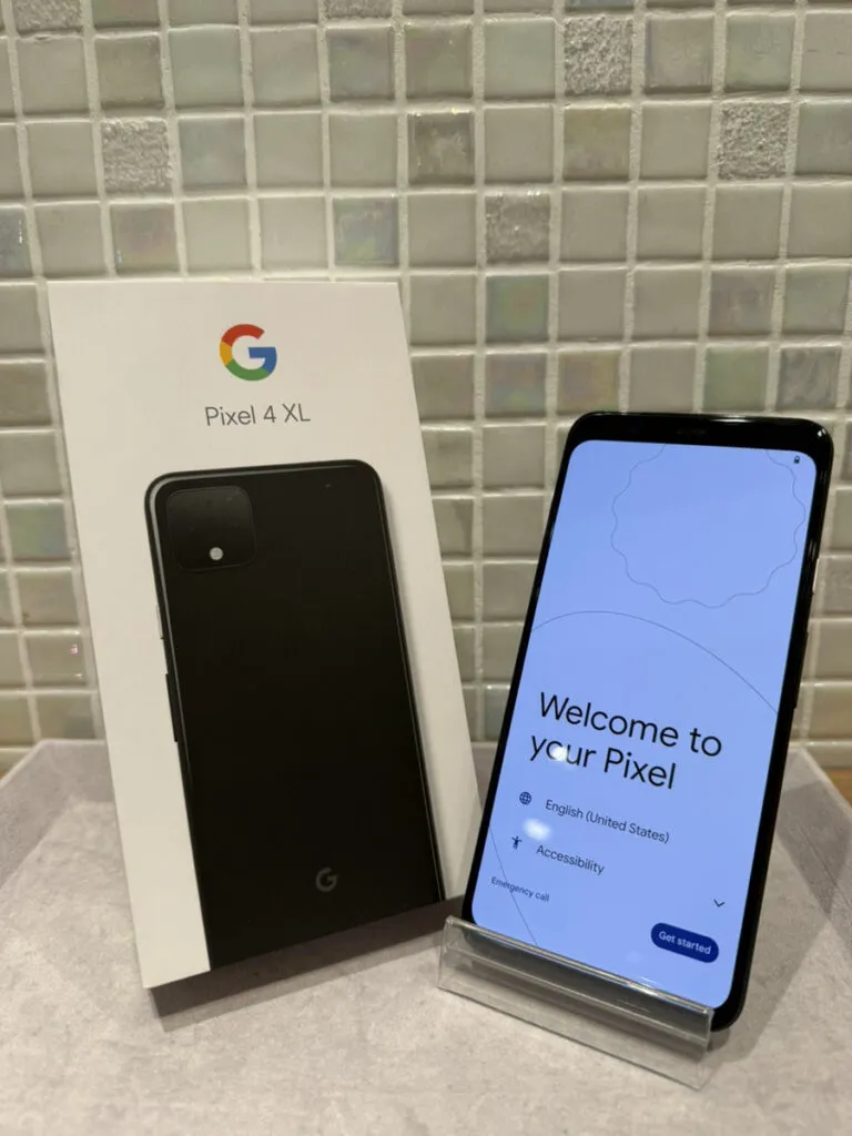 お買取した端末は『Pixel 4 XL SB〇 128GB 初期フィルム箱アダプターあり フレームへこみ傷欠けあり』でございます。