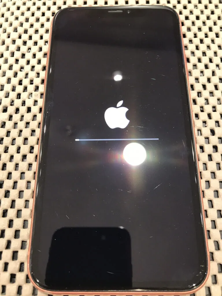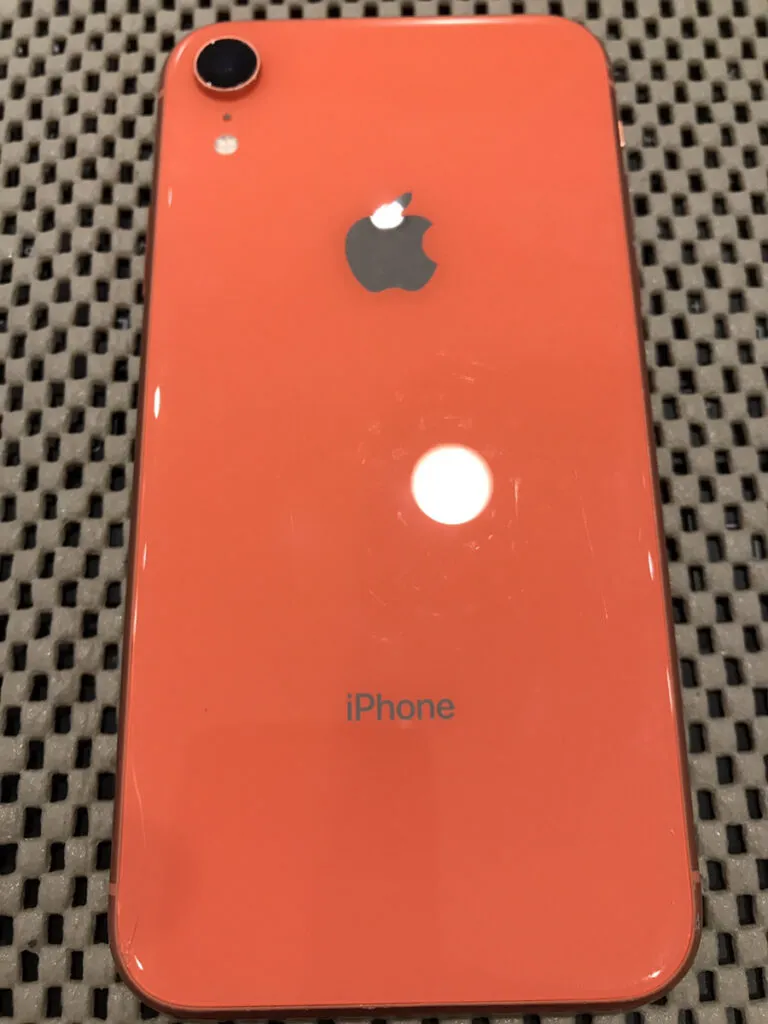 iPhoneXRは液晶に擦り傷があり、背面の一部が割れている状態でした。
