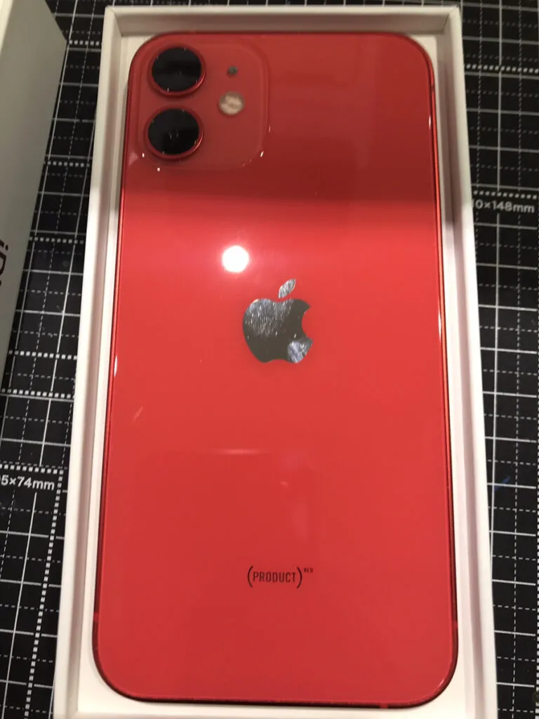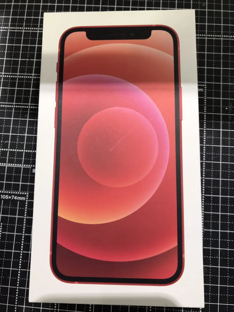 お買取した端末は『iPhone12mini 128GB レッド 本体、箱 SB〇』でございます。