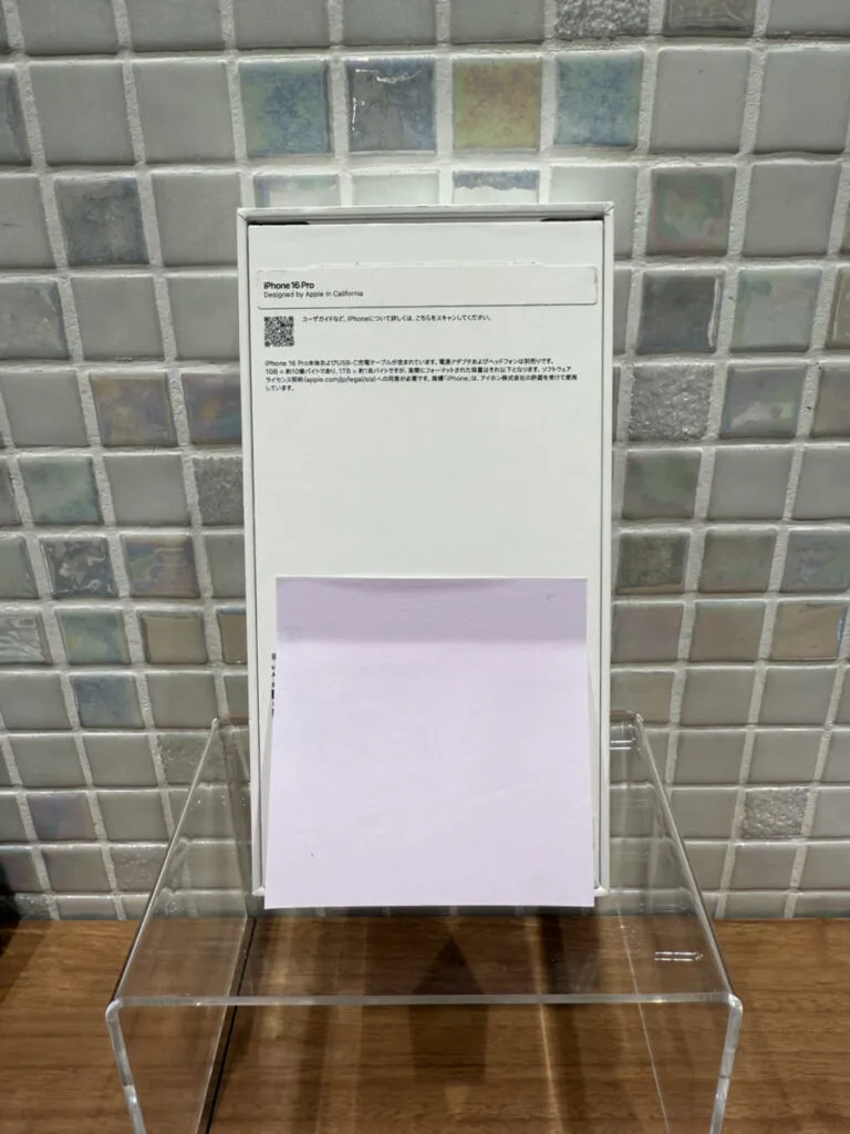 iPhone16Proは開封シールが剥がれていたため、新品開封済でのお買取となりました。