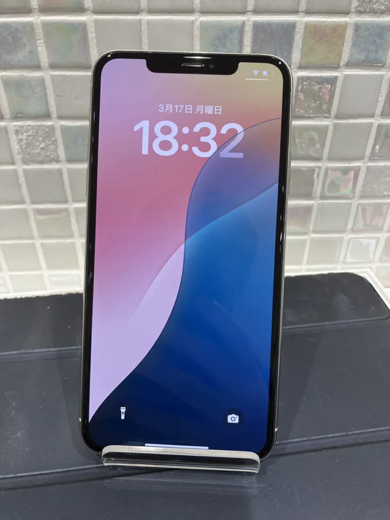 iPhone11ProMaxは交換品でバッテリー容量79%サービス表記の点、画面薄い擦り傷ありの点、フレーム使用感ありの点で減額させていただいてのお買取となりました。