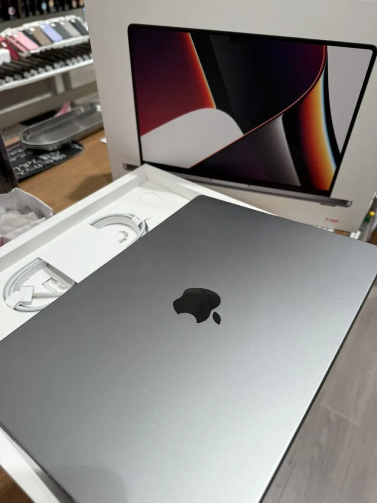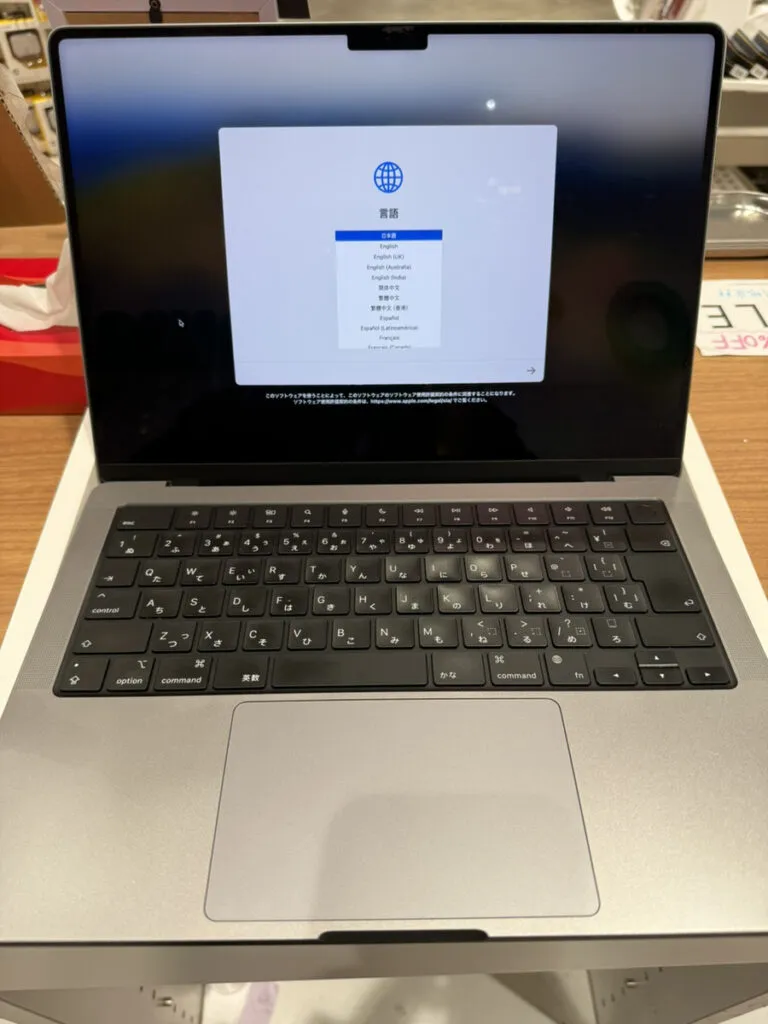 お買取した端末は『MacbookPro14inch 16GBユニファイドメモリ 512GB 中古箱付属品あり』でございます。