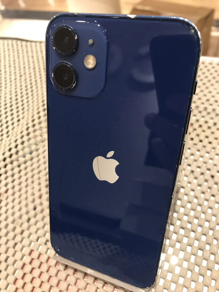 iPhone12miniは液晶側に大きな傷はなかったものの、フレームや背面全体的に目立つ傷があり