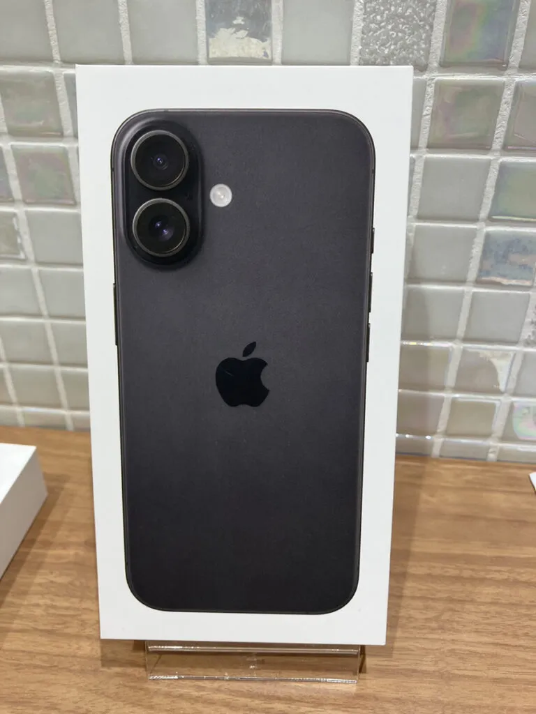 お買取した端末は『iPhone16 128GB ブラック 新品未開封、AppleSIMフリー』でございます。