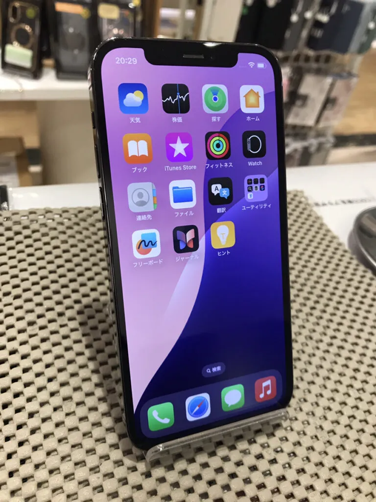 お買取した端末は『iPhone12Pro 256GB グラファイト 中古 本体のみ SB△』でございます。