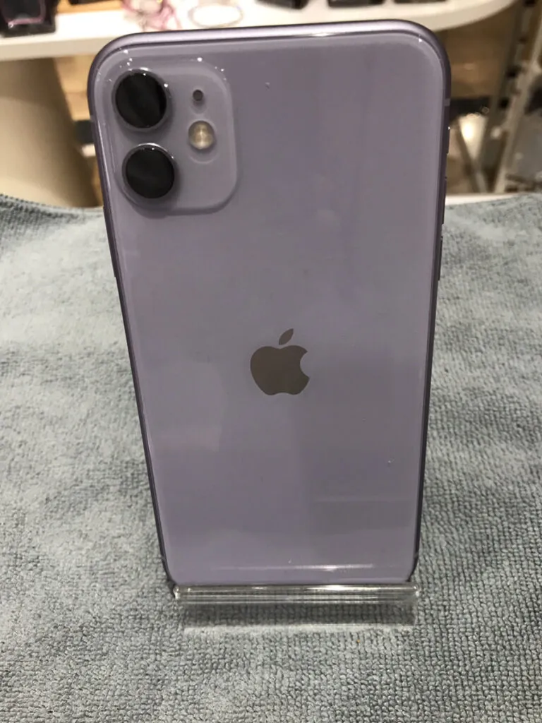お買取した端末は『iPhone11 64GB パープル 中古 本体のみ au〇』でございます。