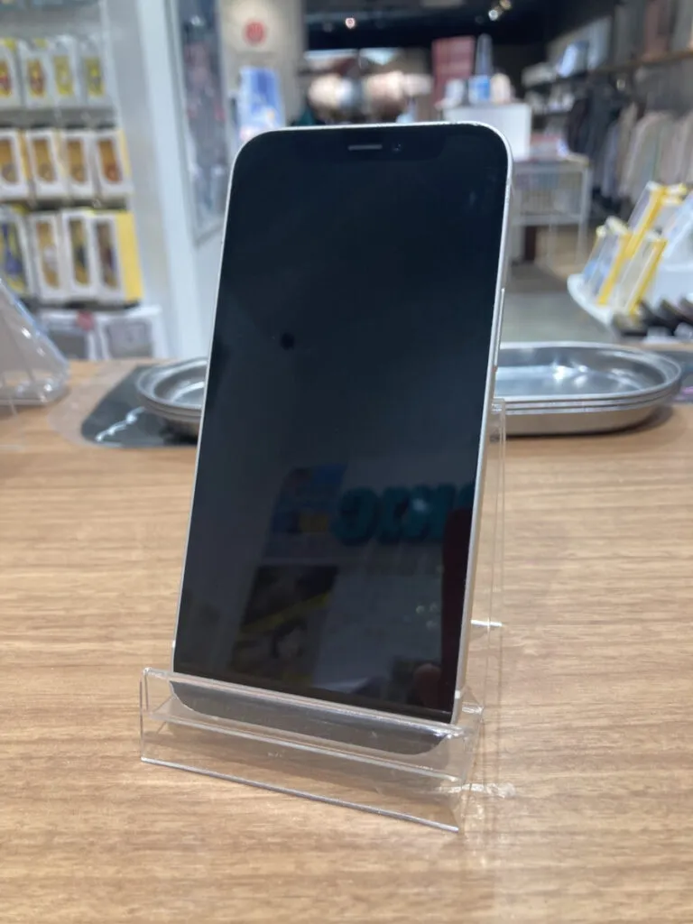 iPhone12minは交換品、アウトカメラの黒点や、画面とフレームの擦り傷などの点で減額させて頂いてのお買取りとなっております。