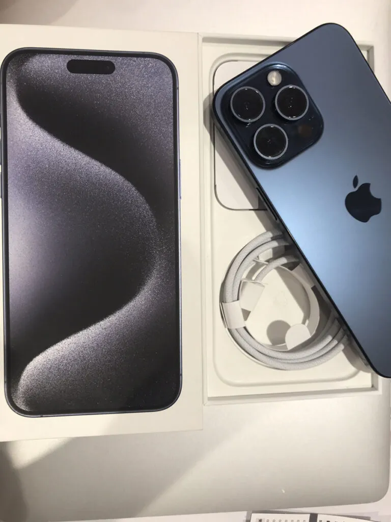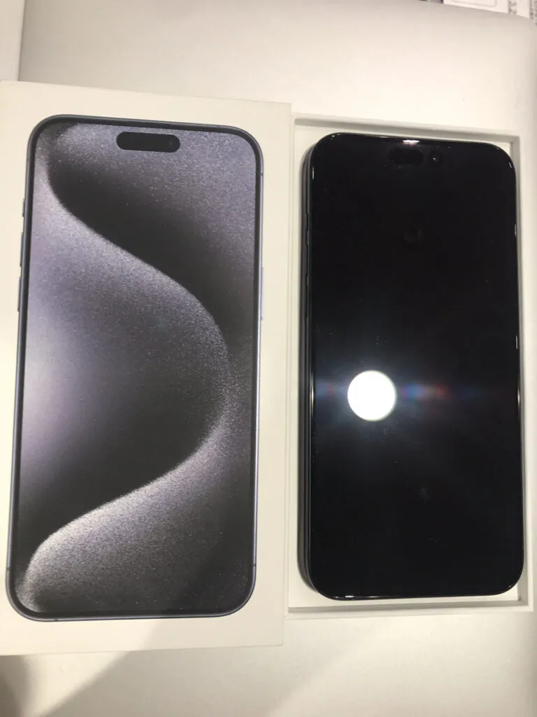お買取した端末は『iPhone15 Pro Max 256GB 中古 本体 箱あり Apple SIMフリー』でございます。