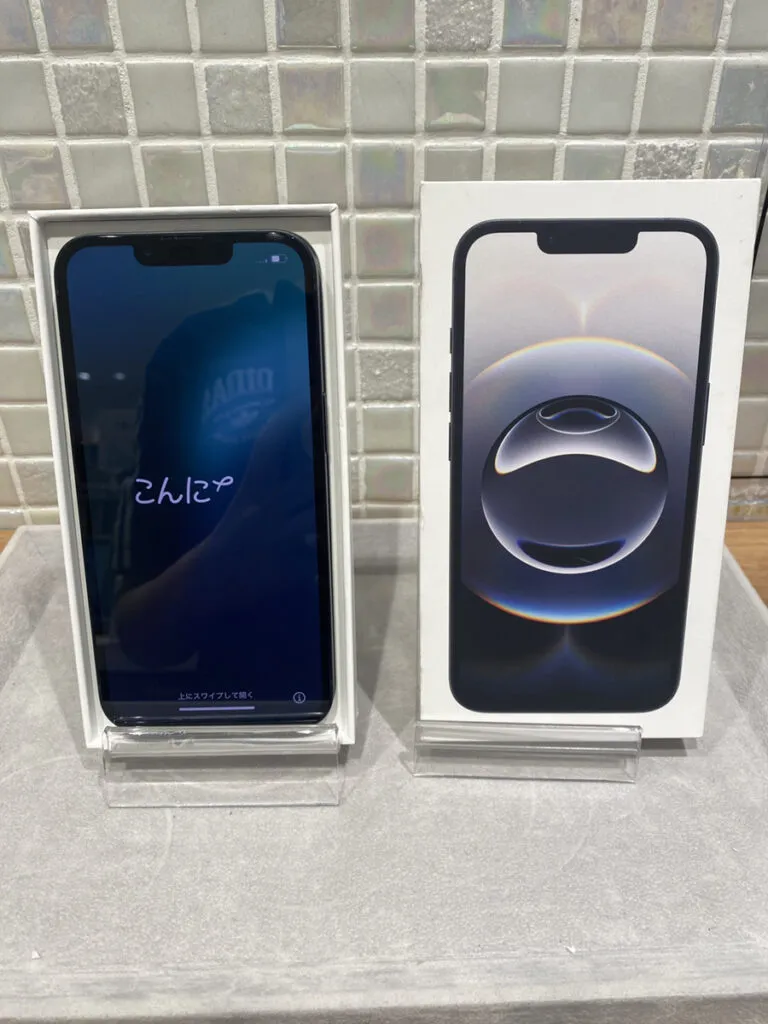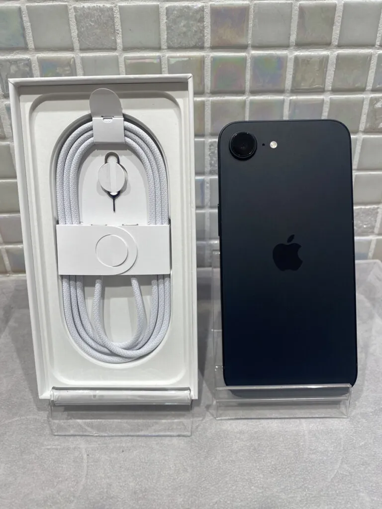 お買取した端末は『iPhone16e 128GB 利用判定ー 中古 本体傷有 箱付属品有』でございます。