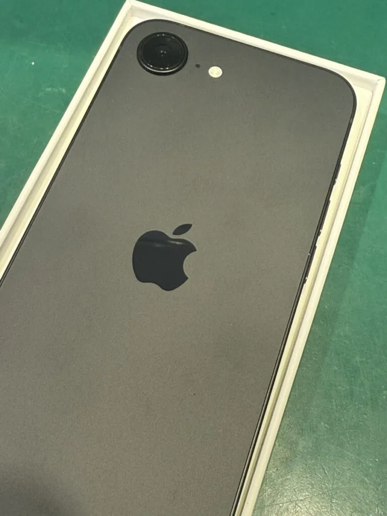iPhone16eは中古端末になります。フレームに一箇所落下痕がございました。
