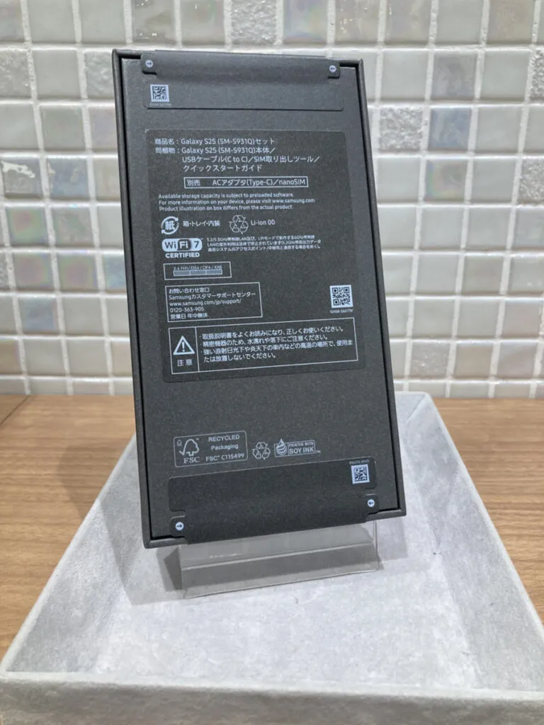 Galaxy S25は新品未開封でしたが、箱に傷や凹凸があった為そちらの点で減額させていただいてのお買取りとなりました。