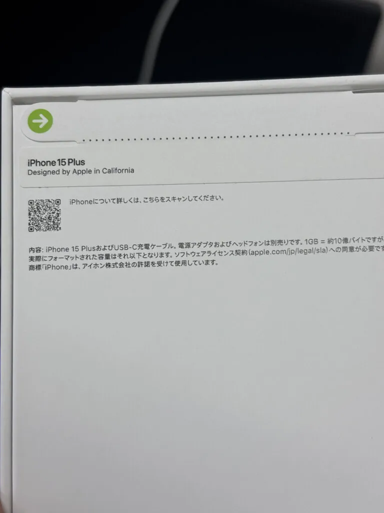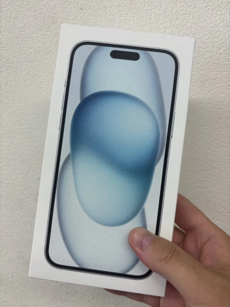今回のお買取端末は『iPhone15Plus 128GB ブルー AppleSIMフリー 新品未開封』でございます。