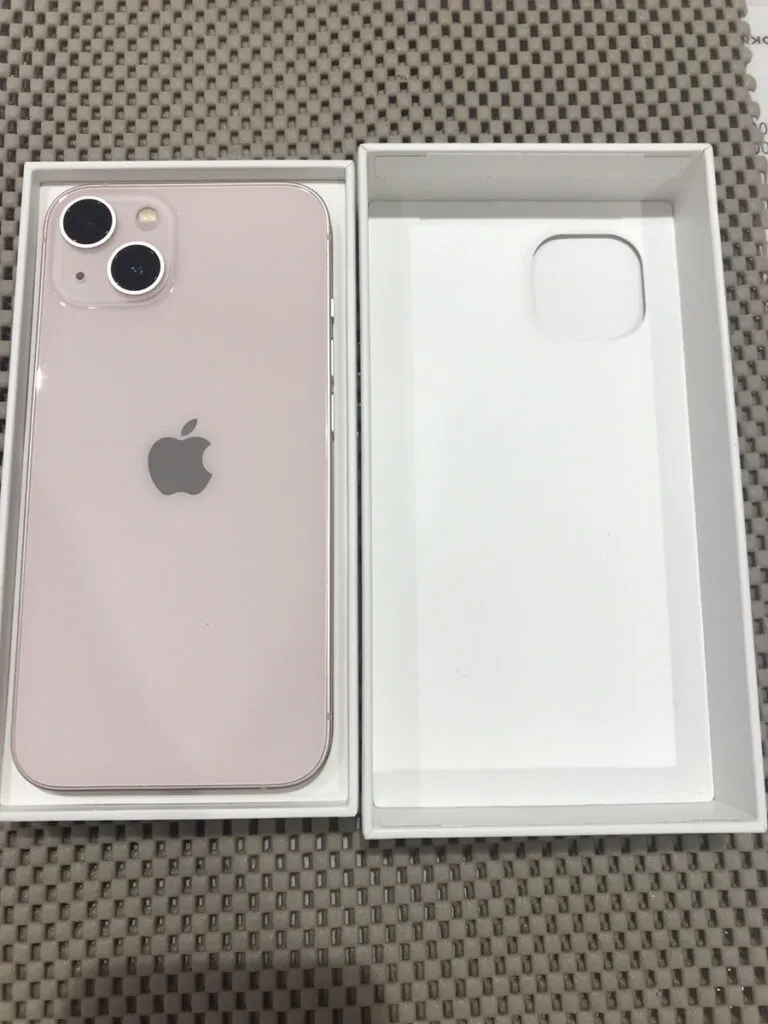 お買取した端末は『iPhone13 256GB 中古 本体、箱 SIMフリー』でございます。