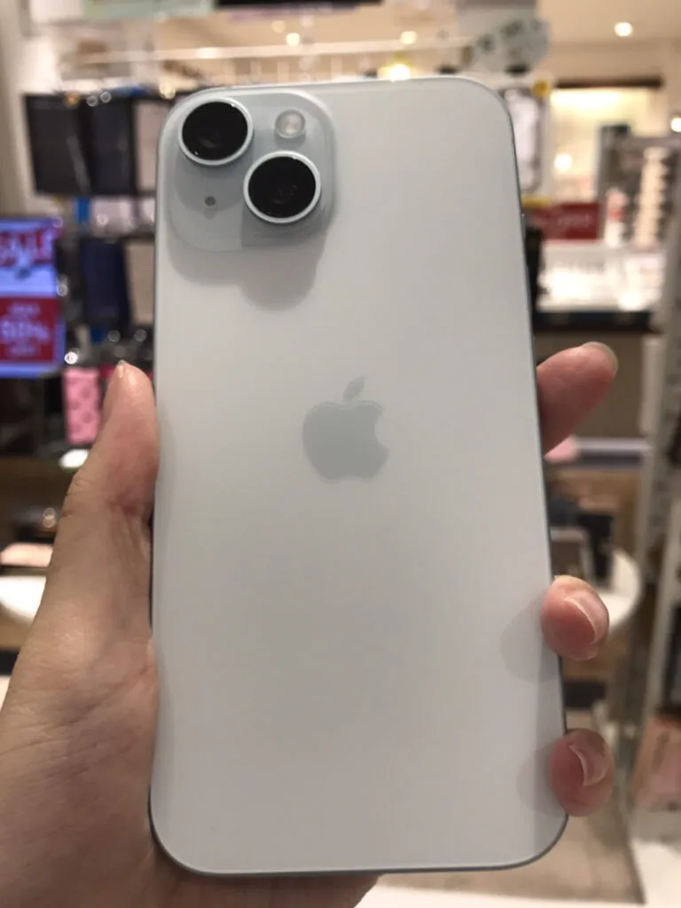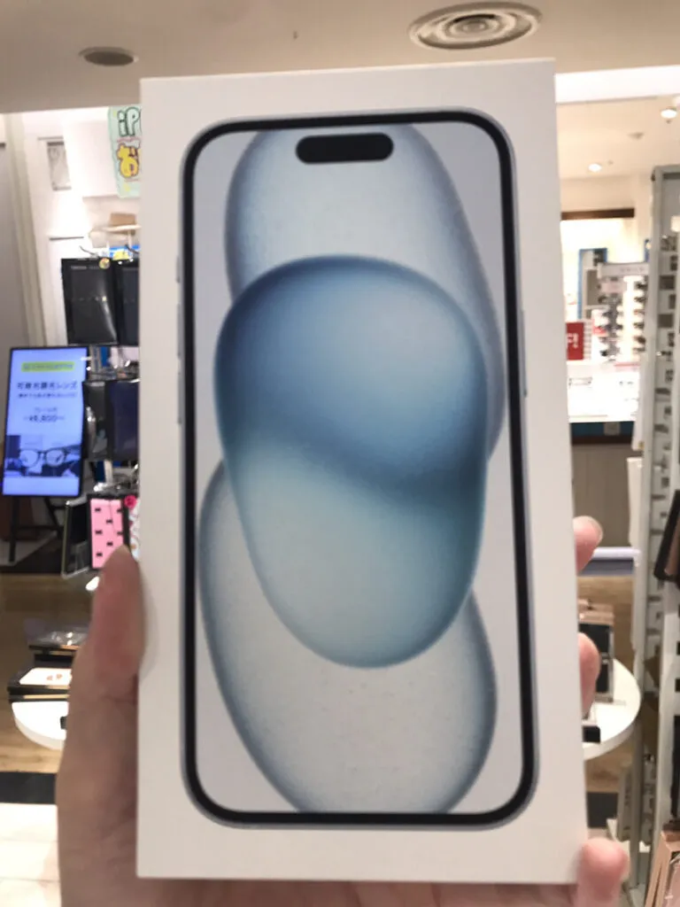 お買取した端末は『iPhone 15 128GB ブルー docomo △ 箱あり 』でございます。