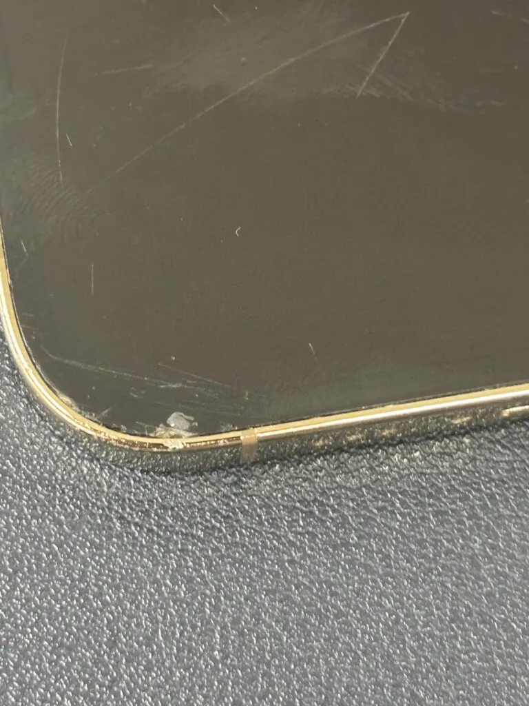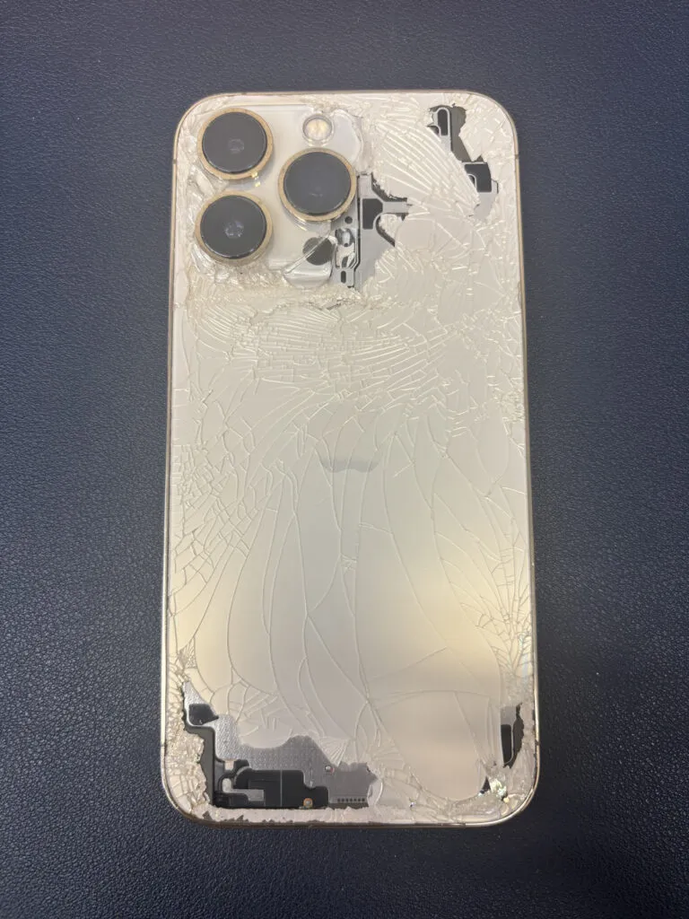 背面がバキバキに割れちゃっているのと、画面にも小さな割れがありました。