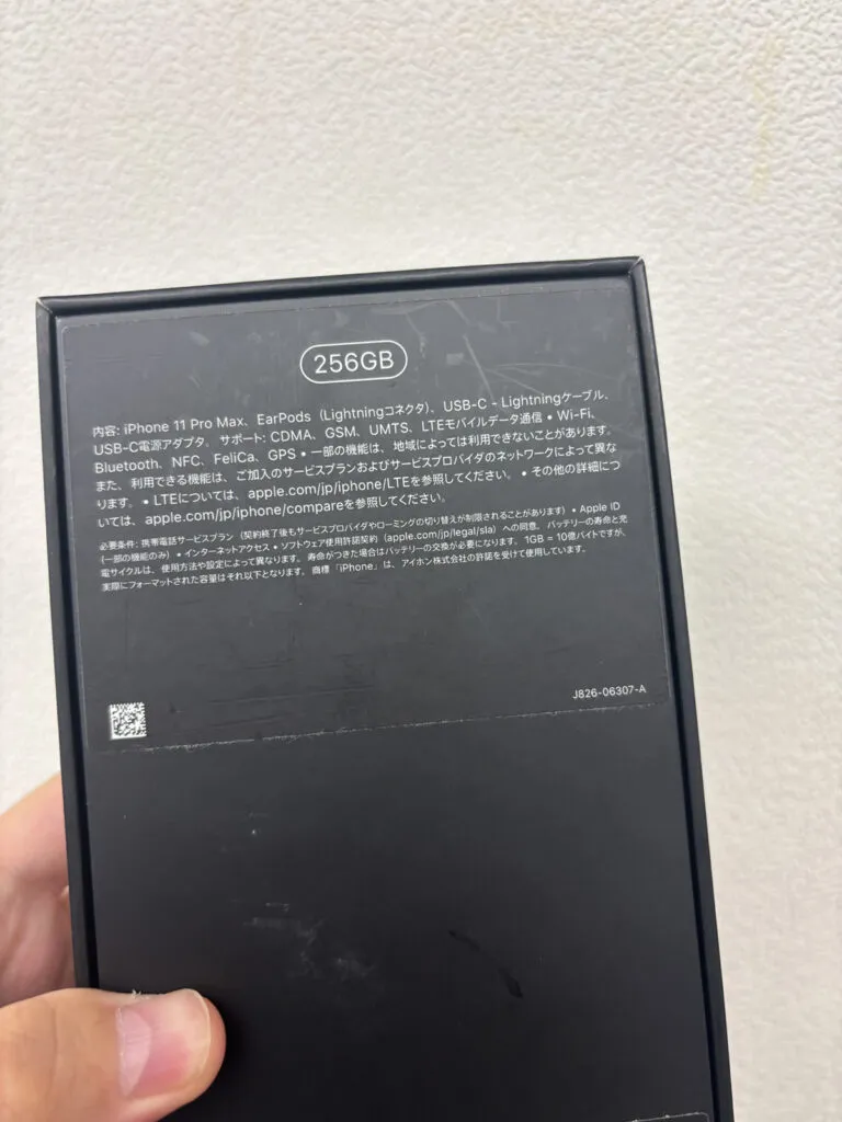 今回のお買取端末は『iPhone11ProMax 256GB スペースグレイ SB ◯ 中古 箱あり付属品なし 【新宿南口店】』でございます。