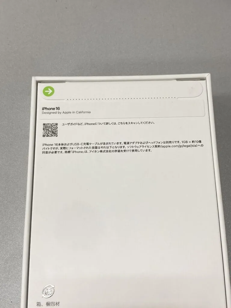 お買取した端末は『iPhone16 256GB 本体 箱 新品付属品』でございます。