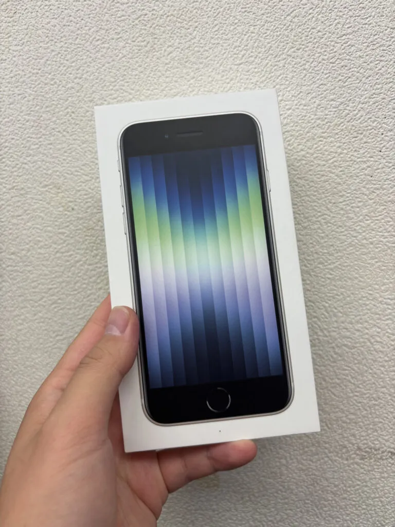 今回のお買取端末は『iPhoneSE3 64GB スターライト au ◯ 中古 箱付属品あり付属品未使用』でございます。