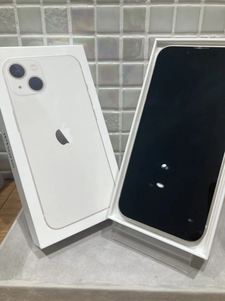 お買取した端末は『iPhone13 128GB 利用制限ー 箱有 SIMロックなし』でございます。