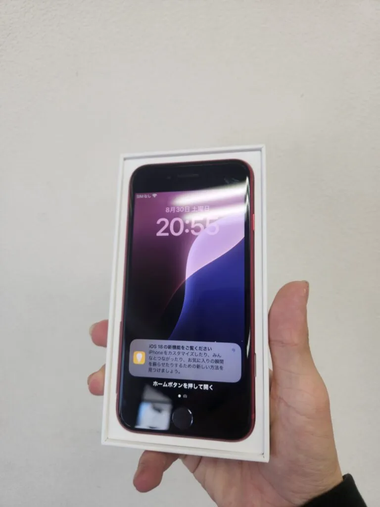 お買取した端末は『iPhoneSE 第3世代 128GB (PRODUCT)RED SB◯ 中古 箱あり付属品』でございます。