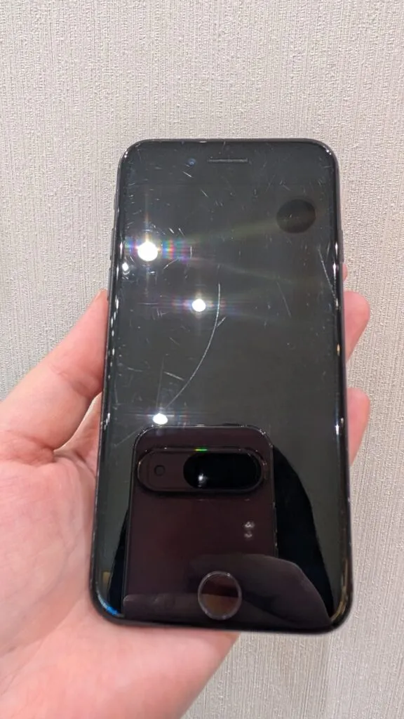 画面に割れや欠けなどは見受けられないですが、傷が多数ある状態です。