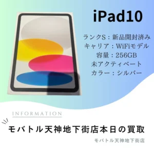 iPad10・256GB・WiFiモデル・ネット制限-【天神地下街】