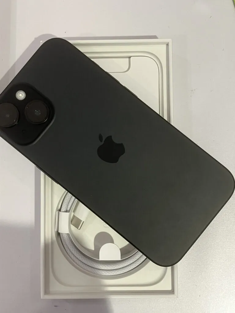 お買取した端末は『iPhone15 128GB 新品開封済み 箱 新品付属品 ブラック Softbank△』でございます。