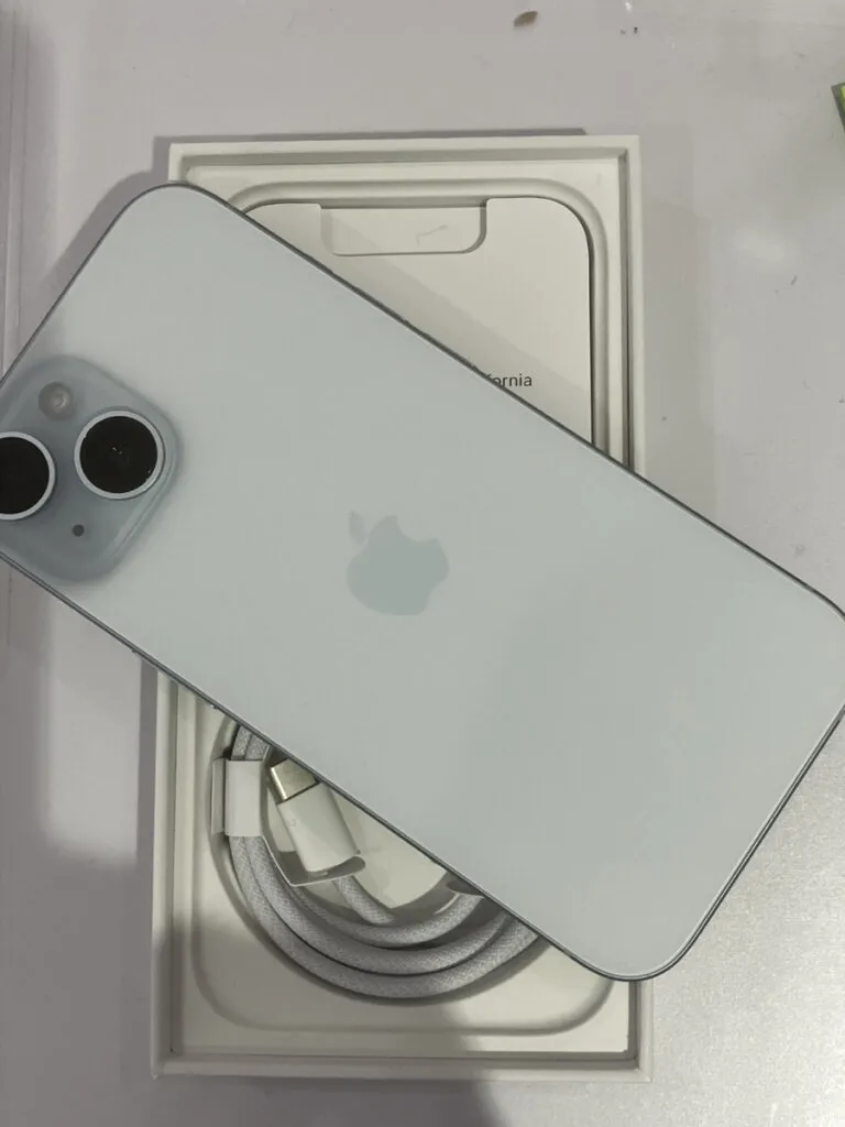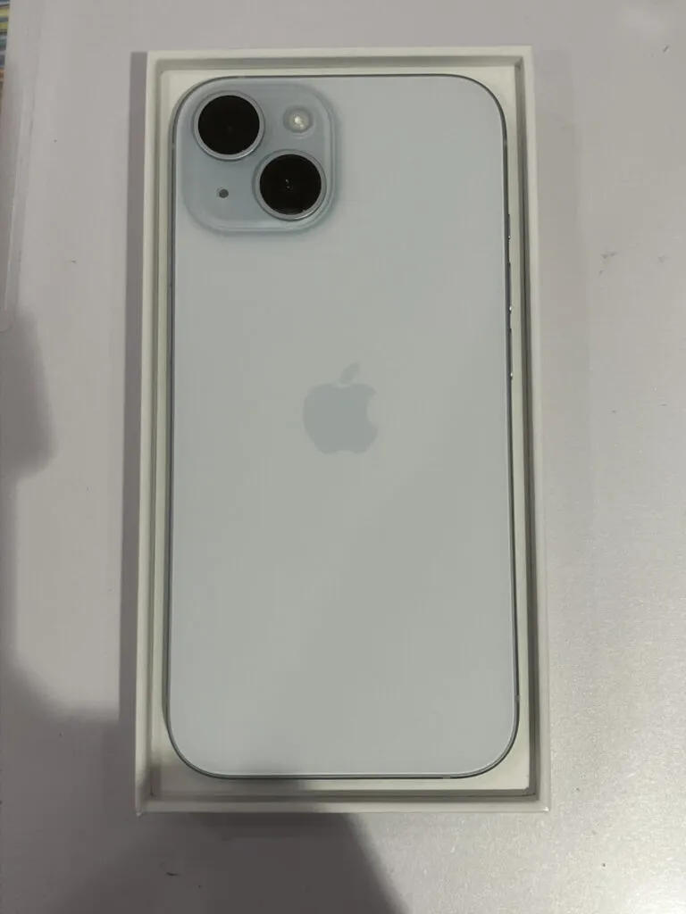 お買取した端末は『iPhone15 128GB 新品開封済み 箱 新品付属品 ブルー Softbank△』でございます。