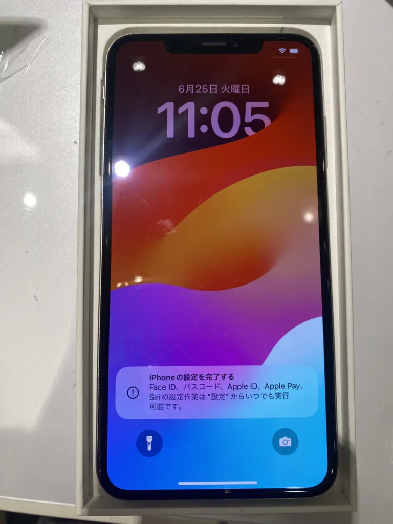 iPhoneXS Maxは少し細かい傷がある状態で、バッテリーも少し劣化が見られました。